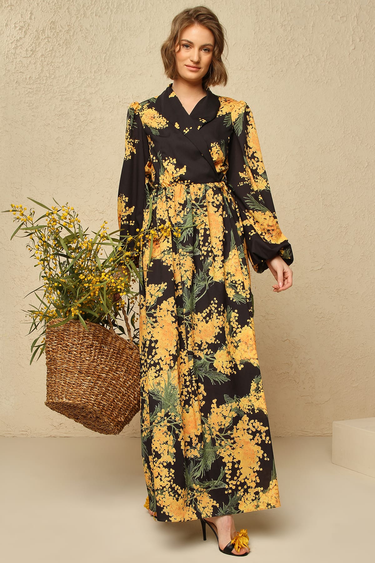 Çiçek deseni ve pastel tonları ile öne çıkan BERRENstudio Mimosa Elbise, kruvaze yaka modeli ile benzersiz bir şıklık sunuyor. Hafif ve rahat bir tasarıma sahip olan bol kesim elbise, uzun etek boyu sayesinde ideal bir kullanım konforu yansıtıyor.