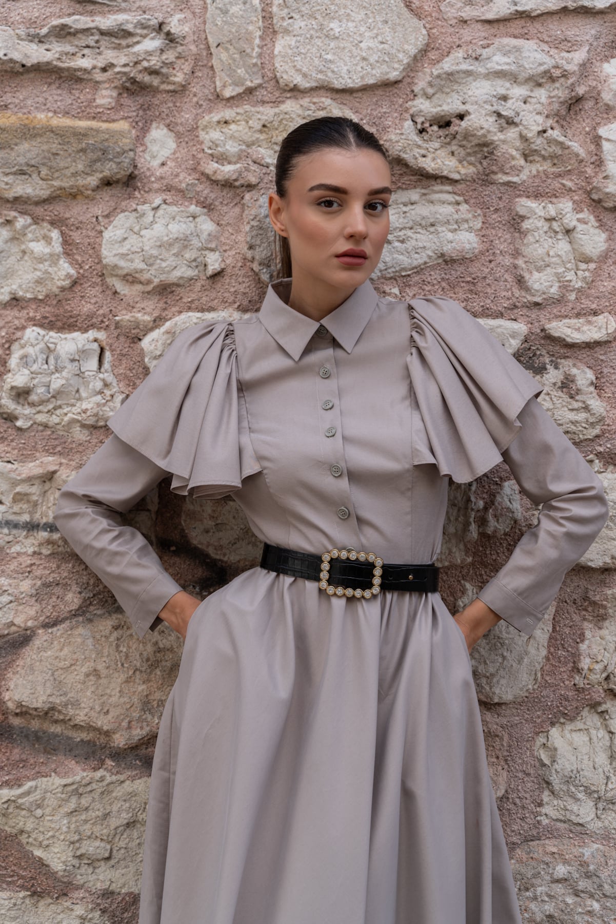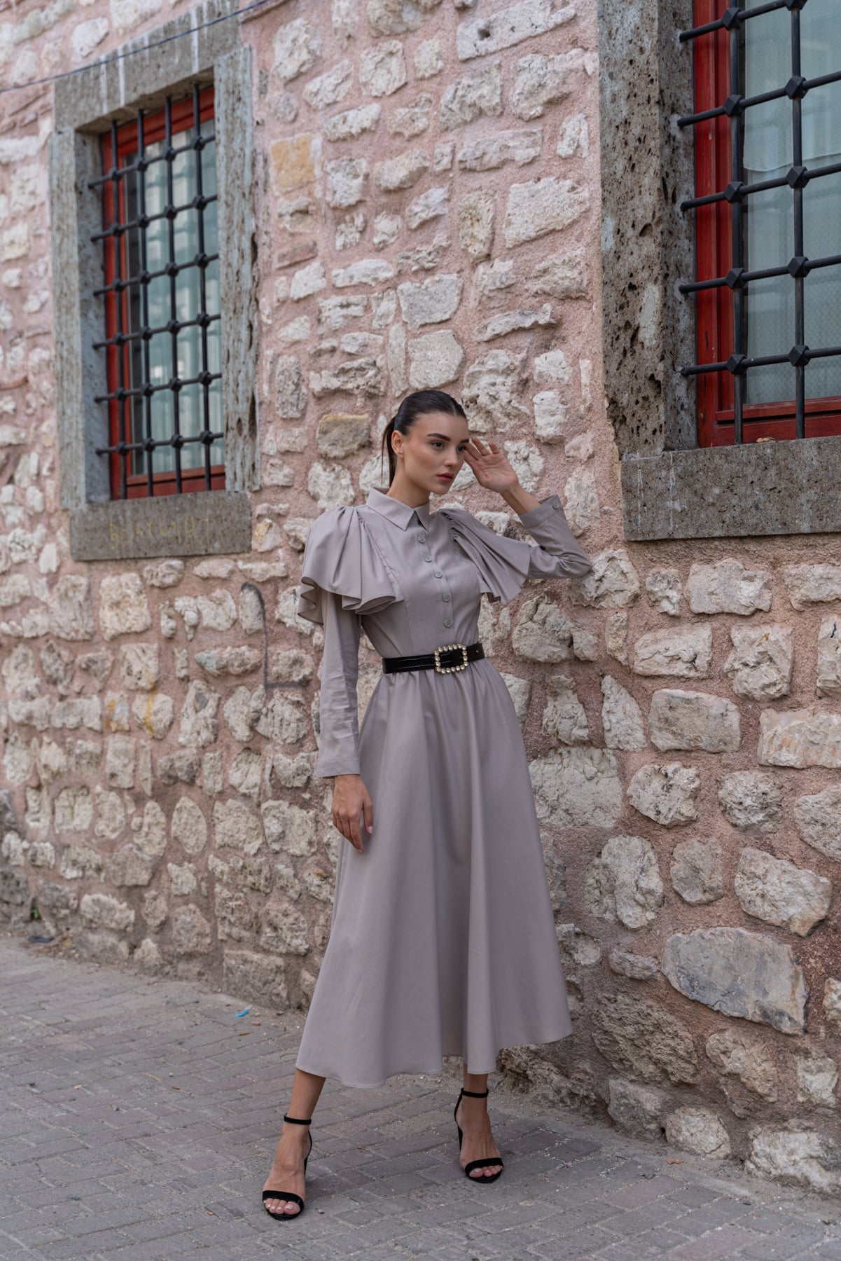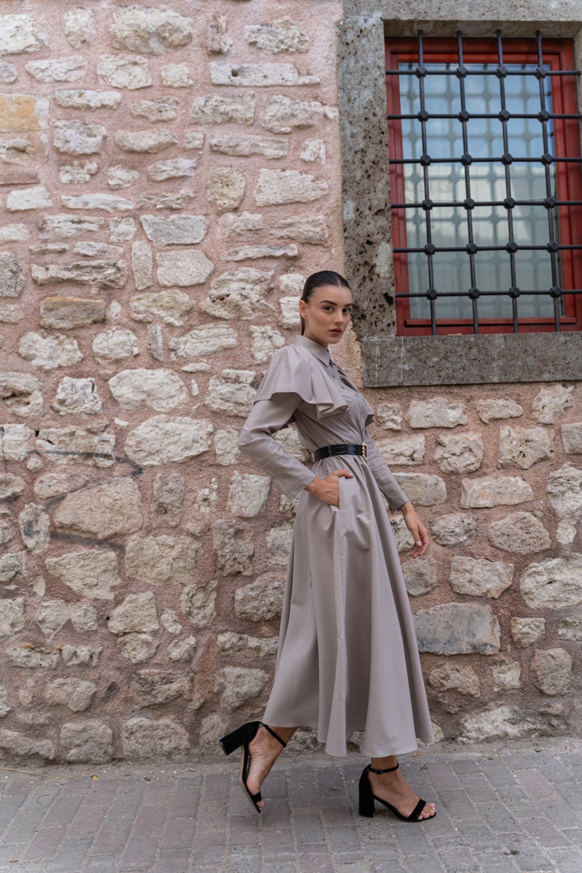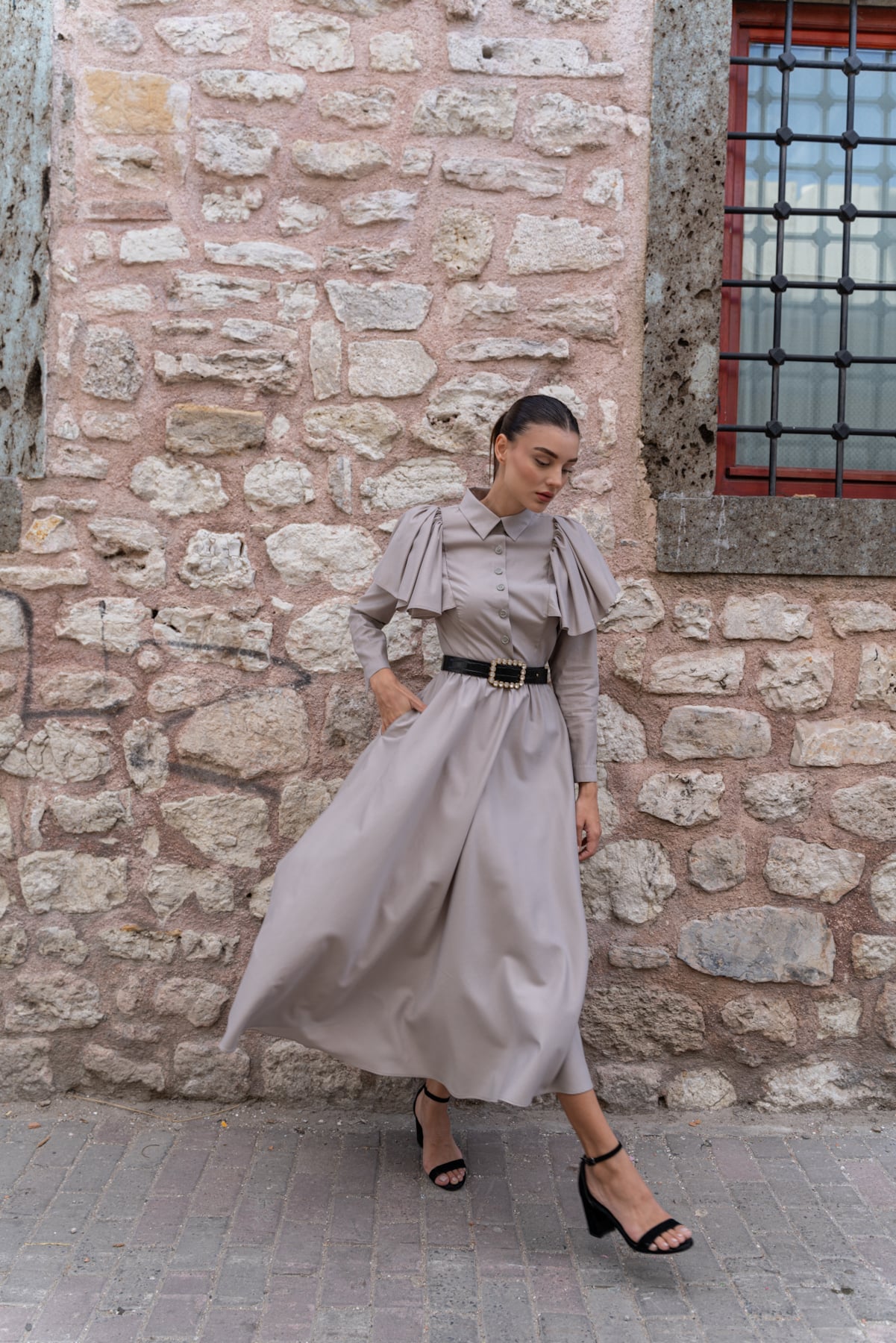 Yarı gömlek formu ve tam kloş eteğiyle hergün giymekten sıkılmayacağınız dolabınızın vazgeçilmez parçalarından olmaya aday Ondula Prime Elbise ile sınırsız şıklık ve konforun tadınız çıkarın.