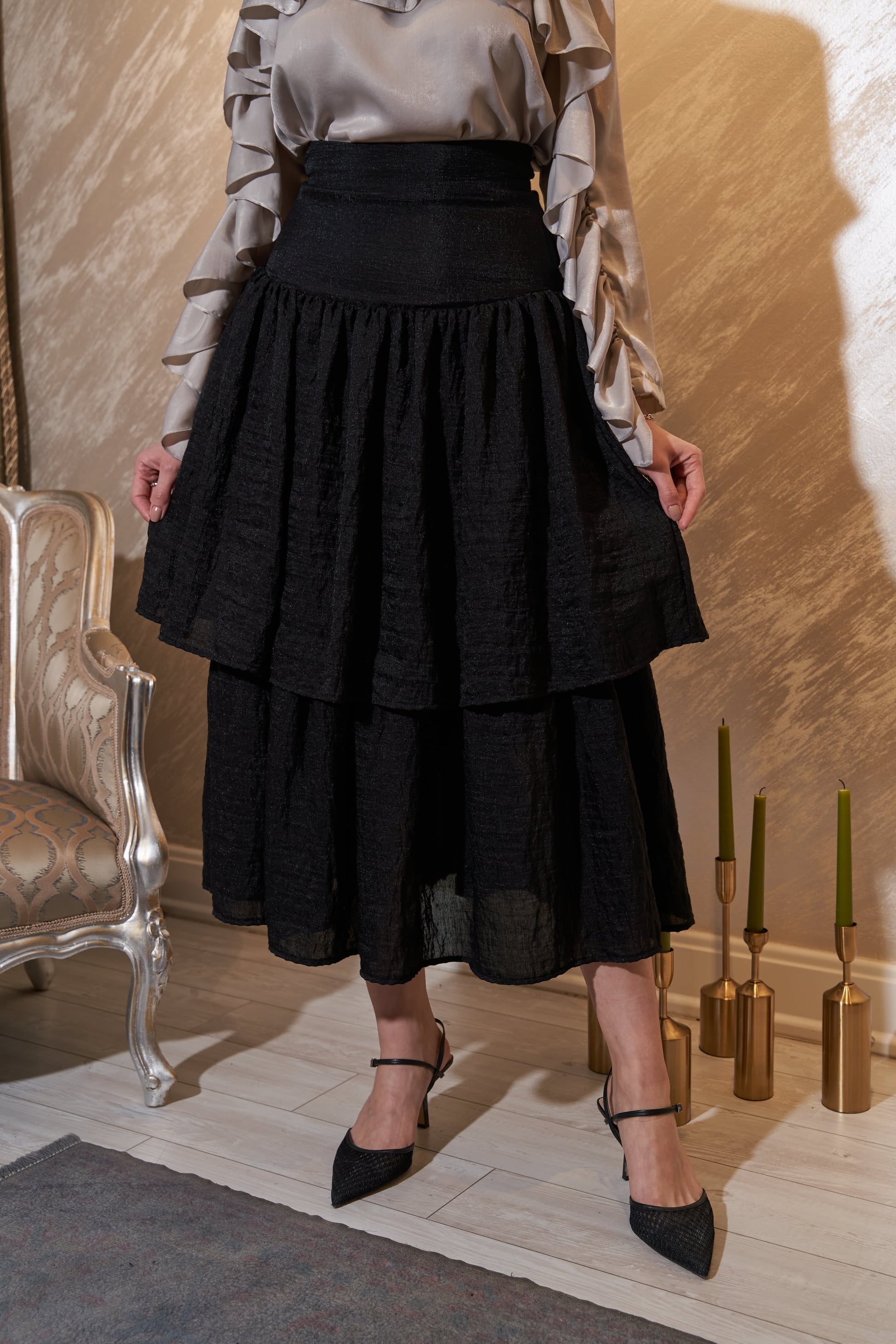 Her tarza uygun boyu ve tasarımı ile kadınlardan tam puan alan son derece iddialı ve çarpıcı. Sıra dışı ve etkileyici bir görünüme sahip olan etek, kloş yapısı ile gün boyu rahat hissettiriyor. Her yaştaki kadın tarafından tercih edilen ürün, diz altı boyu ile ayrı bir konfor sunuyor.