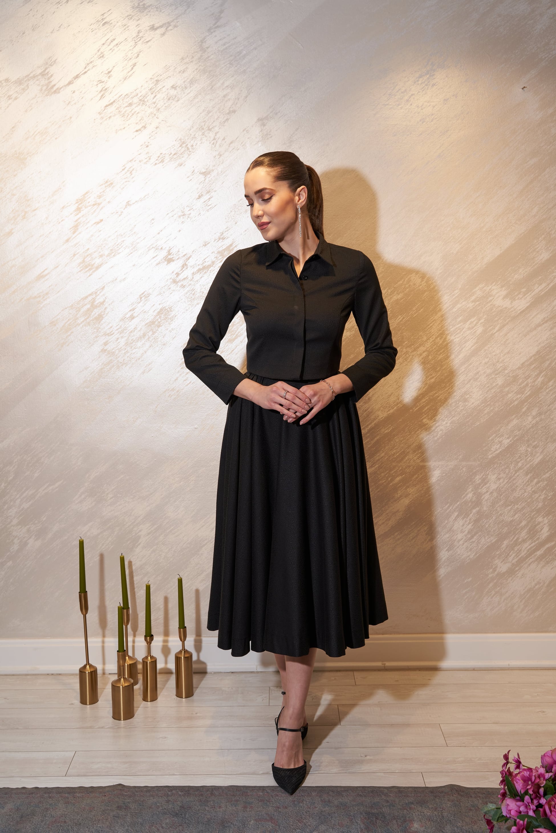 Yalın çizgileri, güçlü duruşuyla birleştiğinde, Black Royal Suit, BERRENstudio kadınının imzası haline gelir.
