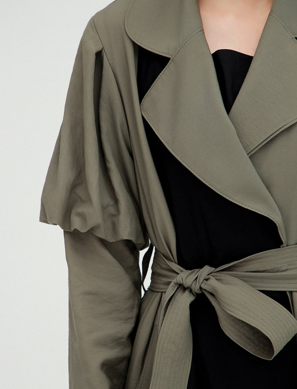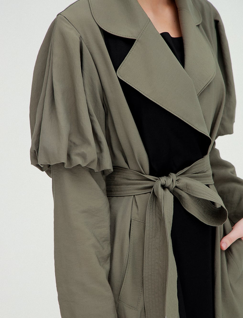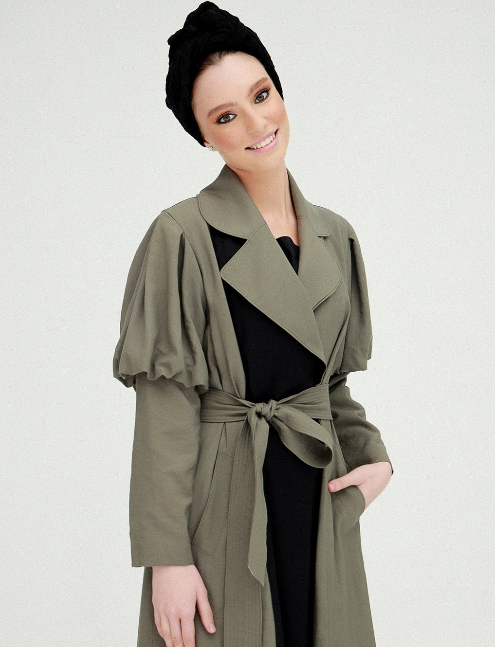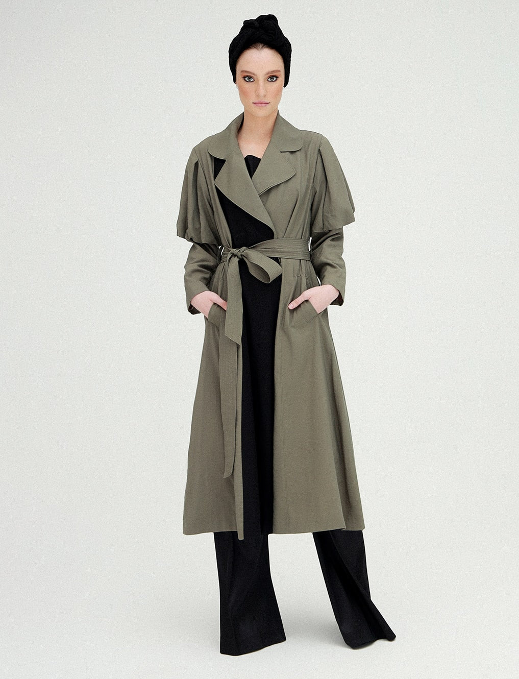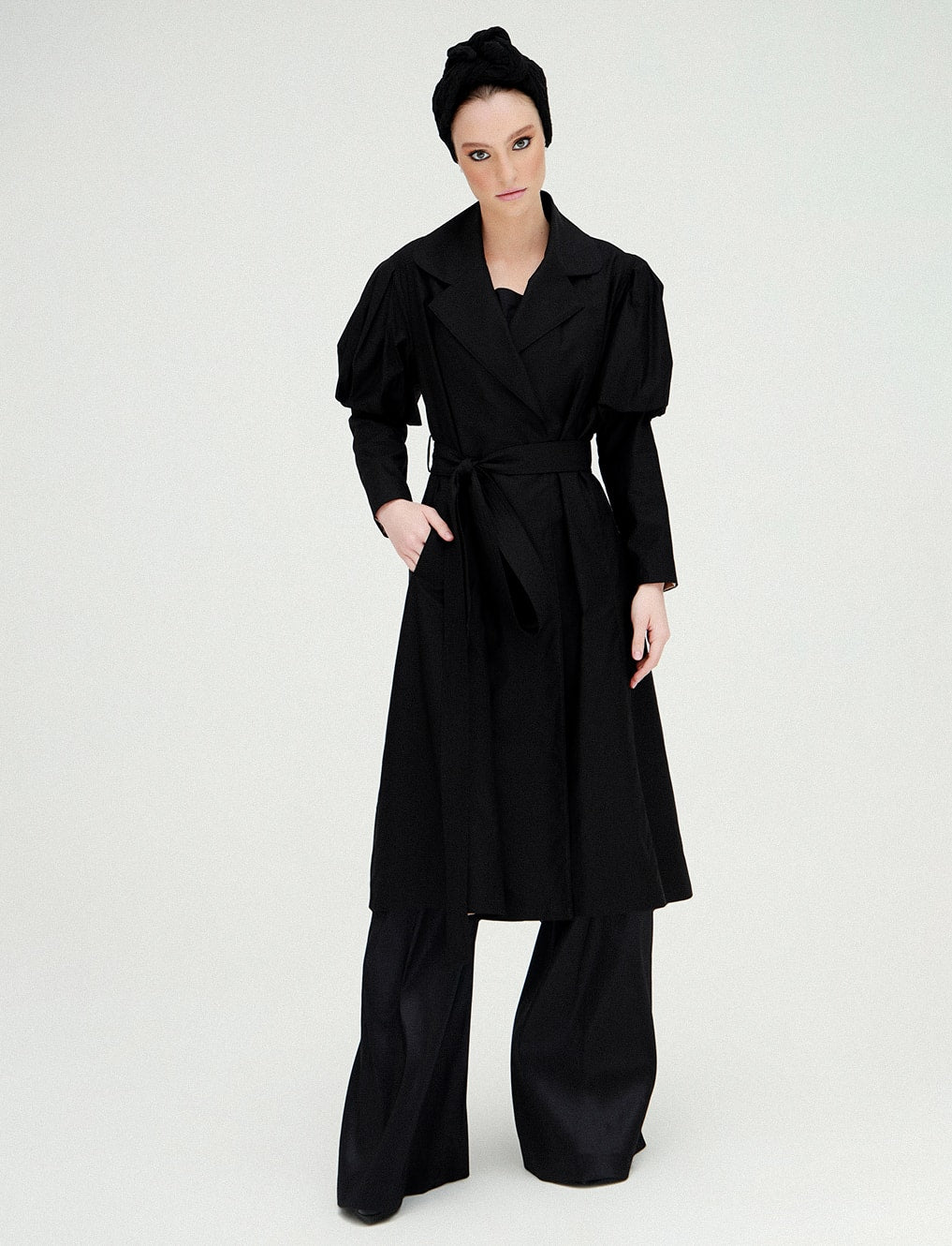 Balon Kol Trençkot, vintage ruhu modern çizgilerle buluşturan özel bir tasarım. Geniş yakası, zarif kuşak detayı ve ikonik balon kollarıyla farkını ilk bakışta hissettiren bu model; feminen gücün sessiz ama etkili temsilcisi.