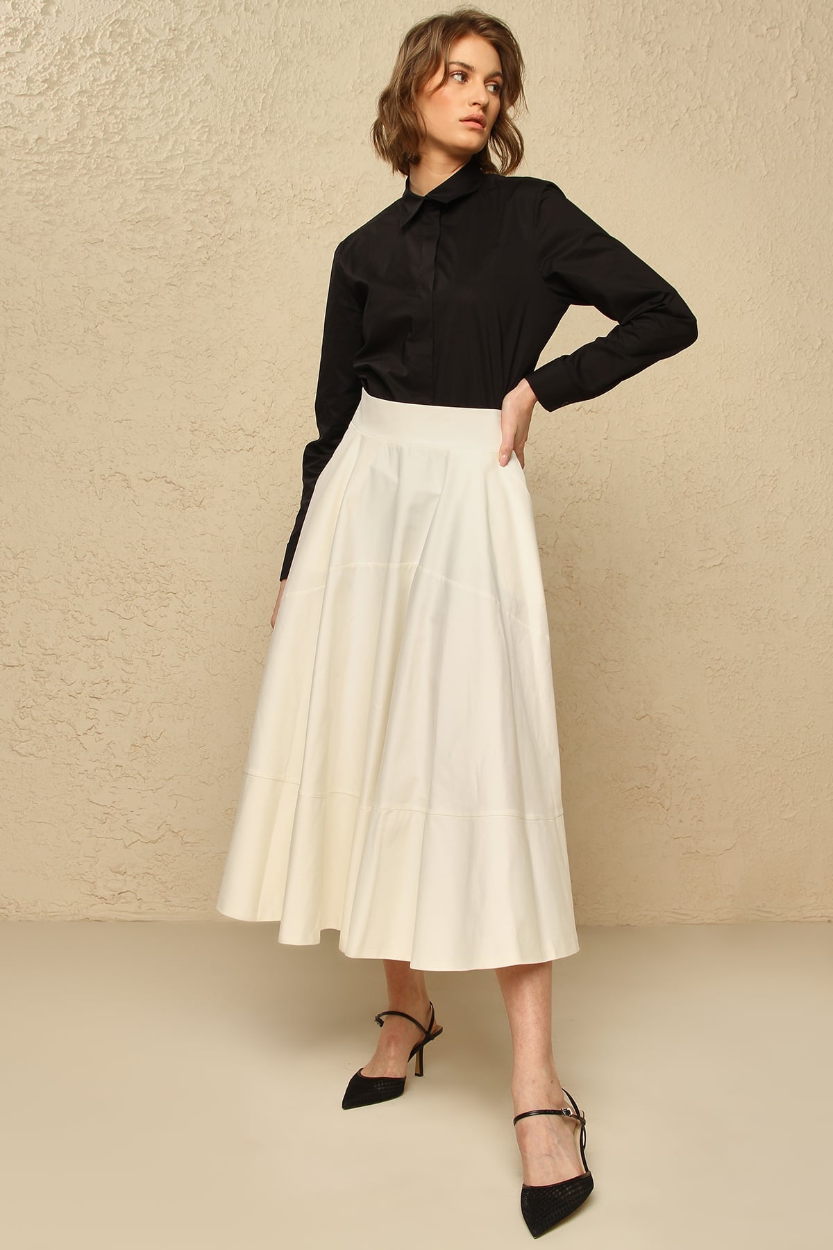 Peplo Etek, %100 pamuk kumaşıyla hem doğallığı hem de konforu bir araya getiriyor. Yüksek bel tasarımıyla bel hattınızı zarifçe vurgulayan bu kloş etek, her adımda özgürce hareket etmenizi sağlar. 86 cm uzunluğundaki ideal boyu, modern bir şıklık sunarken her stile kolayca uyum sağlar.