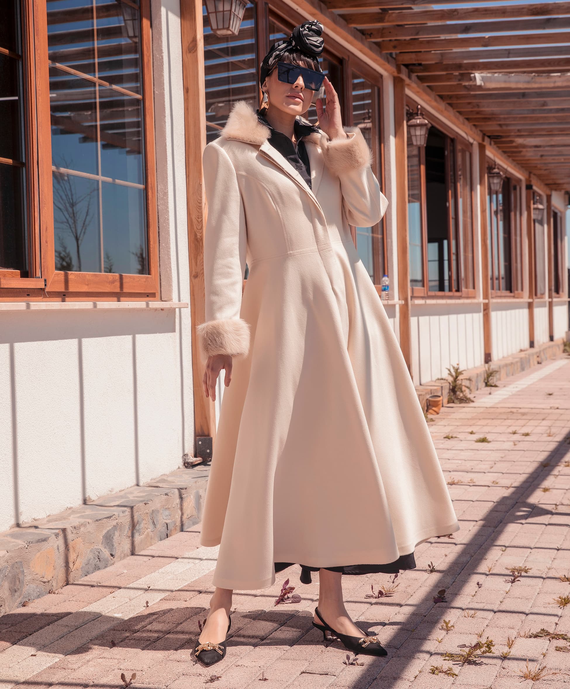 Her detayında özel işçilik ve ince bir estetik anlayışı barındıran Aurora Kaban, benzersiz bir kesimle vücut hatlarınızı zarifçe vurgular. Özel dikim tekniğiyle üretilmesi, her bir kabanın tamamen eşsiz ve size özel olmasını sağlar.