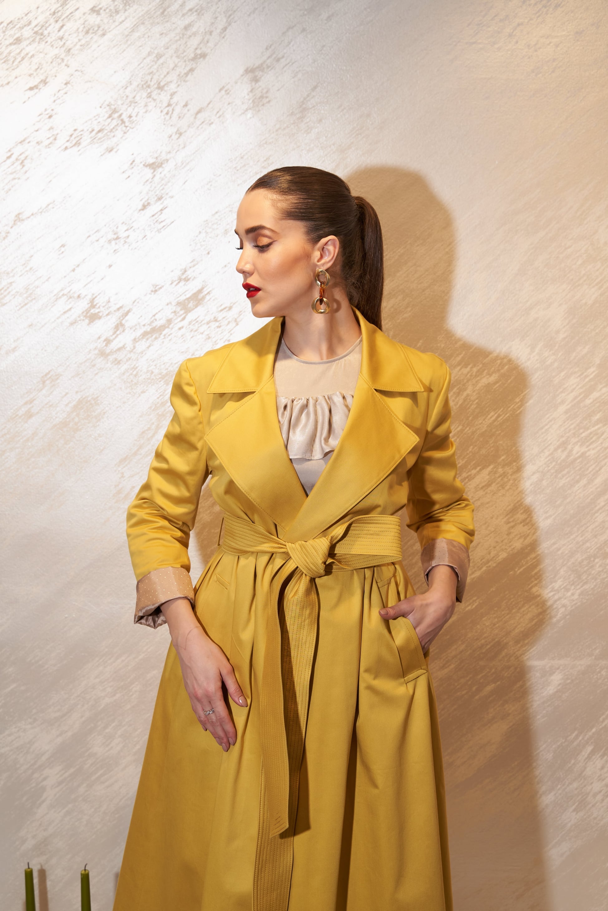 BerrenStudio tarafından oluşturulmuş, yeniliğin ve özgünlüğün ön planda tutulduğu trençkot modelimiz ile hayatınıza yeni bir dokunuş yapıyoruz. Modern çizgileri, usta dikişleri ve özgün tasarımı ile göz kamaştırıcı bir kombine sahip olmanızın yanında, %100 pamuk kumaşı ve ekstra rahatlığı ile uzun trençkotunuzun rahatlığının hissedilmesini sağlıyor. Klasik trençkot modellerinin dışına çıkılarak en yeni trendlerin oluşmasını ve yansıtılmasını sağlayan trençkot modelimiz, dolabında sınır çizgileri bulunmayan şık ve tarz kadınların en popüler parçası haline geliyor.
